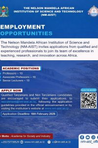 Employment Opportunities at NM-AIST admin Announcements, events news, Latest News For more information about the position click Job Advert at NM-AIST in Tanzania January 23, 2026