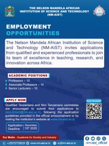 Employment Opportunities at NM-AIST admin Announcements, events news, Latest News For more information about the position and requrement click Job Advert at NM-AIST in Tanzania November 10, 2025